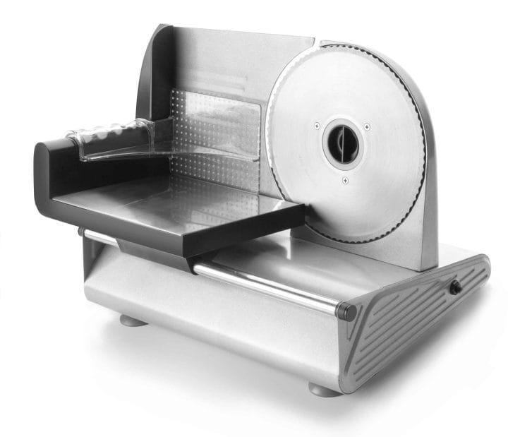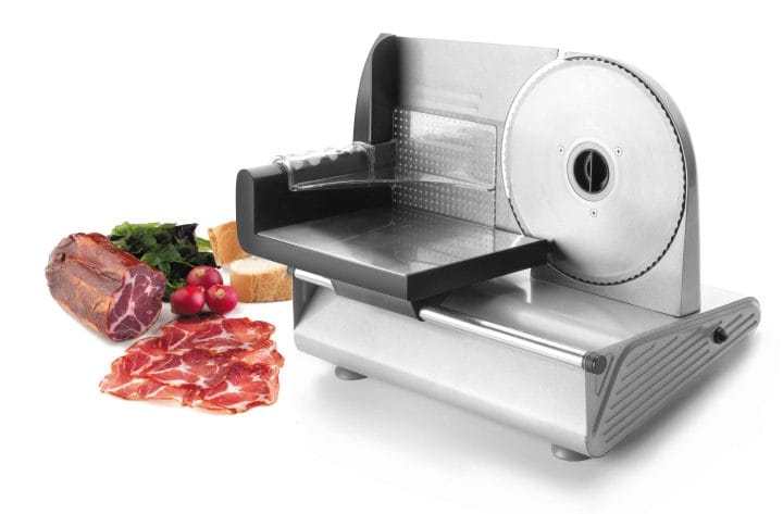 Cortadora de carnes frias elétrica modelo Home de 150 W fabricada em aço inoxidável 18/10, com disco de corte de 190 mm