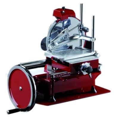 Feito de alumínio com peças de aço e acabamento vermelho brilhante, a cortadora permite uma limpeza rápida e atende aos mais exigentes requisitos de saneamento. Esta unidade é totalmente operada manualmente e não precisa ser conectada à rede elétrica. O afiador de lâmina é incorporado para corte eficaz e afiado, equipado com anel de proteção em torno de sua lâmina , é uma unidade de corte resistente, duradoura e eficaz.