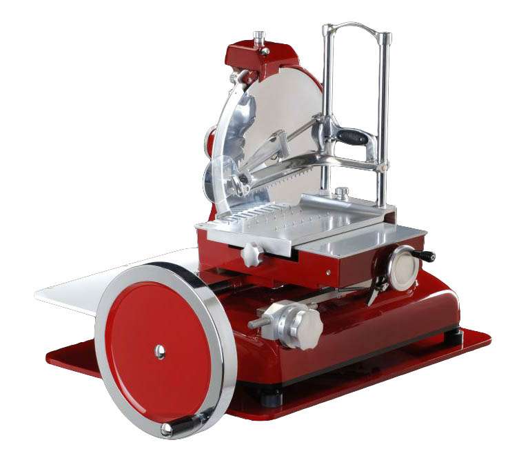 Feito de alumínio com peças de aço e acabamento vermelho brilhante, a cortadora permite uma limpeza rápida e atende aos mais exigentes requisitos de saneamento. Esta unidade é totalmente operada manualmente e não precisa ser conectada à rede elétrica. O afiador de lâmina é incorporado para corte eficaz e afiado, equipado com anel de proteção em torno de sua lâmina , é uma unidade de corte resistente, duradoura e eficaz.
