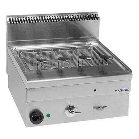 Resistências elétricas em aço inox «incoloy» equipadas no exterior do fundo da cuba; temperatura regulável; indicador luminoso de funcionamento e termóstato de segurança que interrompe o funcionamento na ausência de água na cuba.