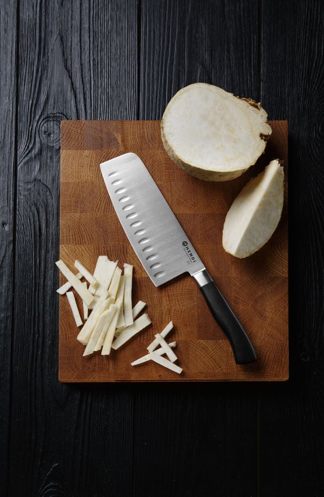 A liga especializada de aço cirúrgico Crómio-Molibdénio-Vanádio x50CrMoV15 garante as seguintes características: lâmina muito afiada, gume de corte muito duradouro, gume facilmente afiável, elevada resistência a manchas.