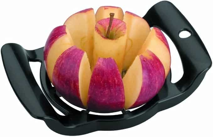 Desanimador cortador manual redondo fabricado com lâminas de aço inoxidável e corpo de plástico. Ideal para peças de frutas pequenas.