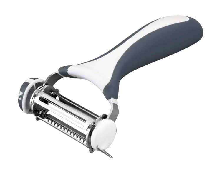 Descascador tipo “E” de 20 cm de comprimento, com 3 lâminas rotativas de aço inoxidável 18/10 de alta qualidade e resistência à corrosão.