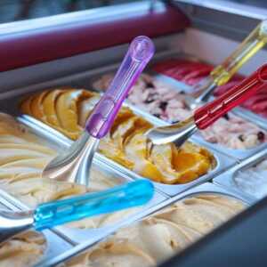 A espátula de gelado com pega Tritan é um acessório de cozinha útil feito de aço inoxidável para dispensar porções de gelado de forma conveniente. A espátula de gelado é recomendada para cafés e restaurantes, mas também é adequada para cozinhas domésticas.