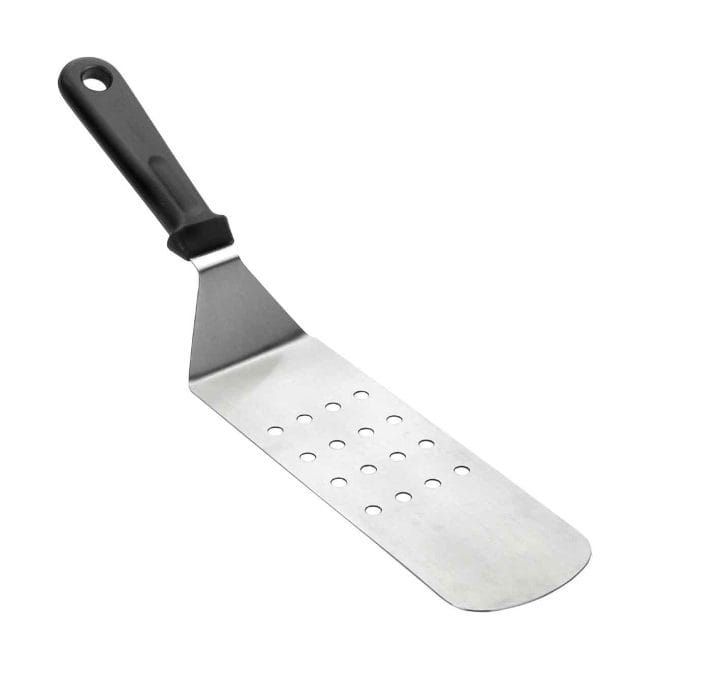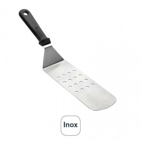 Espátula perfurada, cotovelos para cozinha fabricada em aço inoxidável de alta qualidade que oferece excelente resistência à corrosão. Medidas: 7,5 x 21,5 cm