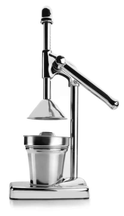 Espremedor manual de imprensa alto para suco de 15 x 19 x 39 cm de aço inoxidável 18/10, que oferece uma excelente resistência à corrosão e aos ácidos alimentares.