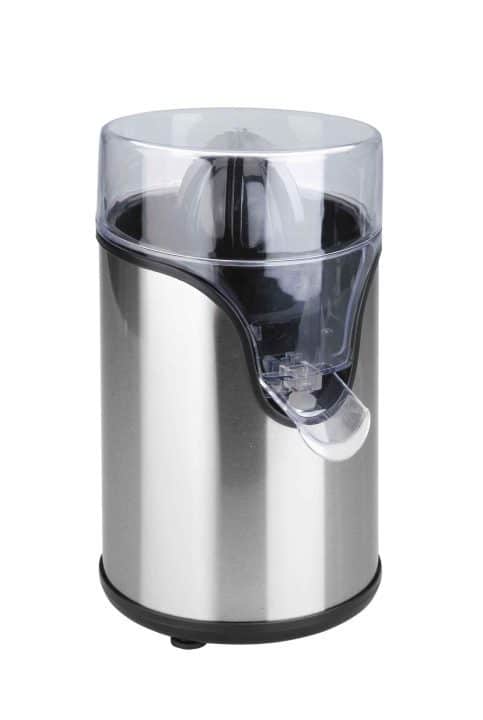 Espremedor elétrico de suco de 85 W de potência, sistema anti-gotejamento e construção em aço inoxidável de grande resistência e qualidade.