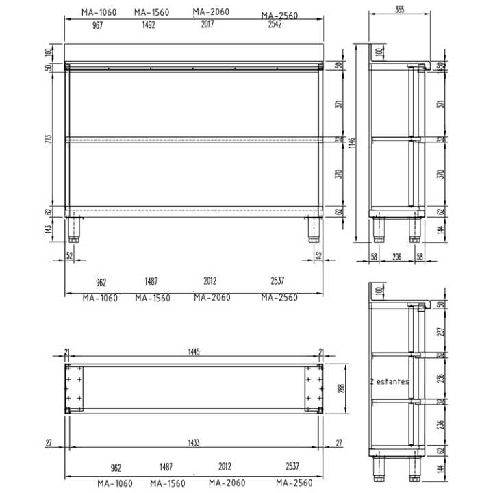 Duas versões disponíveis: com uma ou duas prateleiras.