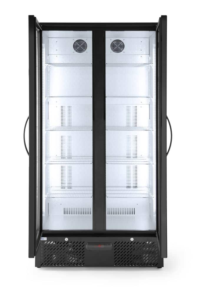 Porta dupla, com 10 prateleiras cromadas.