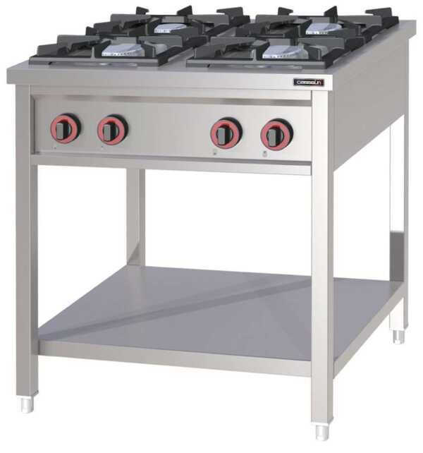 4 queimadores em ferro fundido (4 kW, 7 kW, 7 kW, 7 kW)