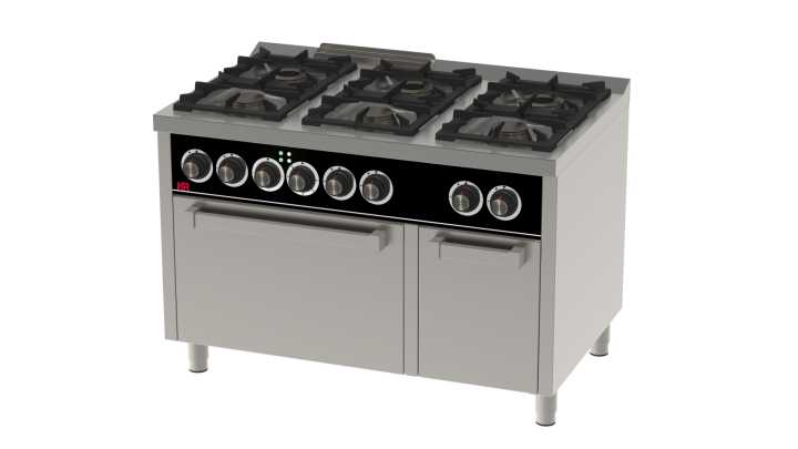 Fogão a gás 6 queimadores + com forno eléctrico C6F750HE -dev.palamenta.com.pt Fogão a gás 6 queimadores + co...