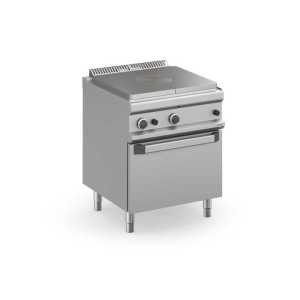 Nas versões com acionamento elétrico, a placa de cozimento, em aço macio com 15 mm de espessura, é única, mas possui 4 zonas de cozimento com controle independente