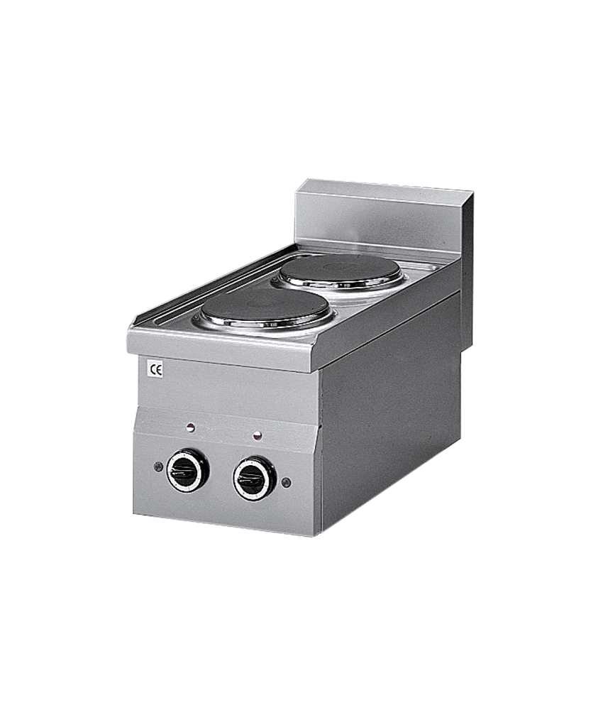 Fogão elétrico de bancada com 2 placas de aquecimento.