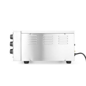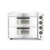 Forno de piza compacto com piso de câmara forrado a tijolo de fogo. Equipado com elementos de aquecimento: um na parte superior e outro na parte inferior da câmara.
