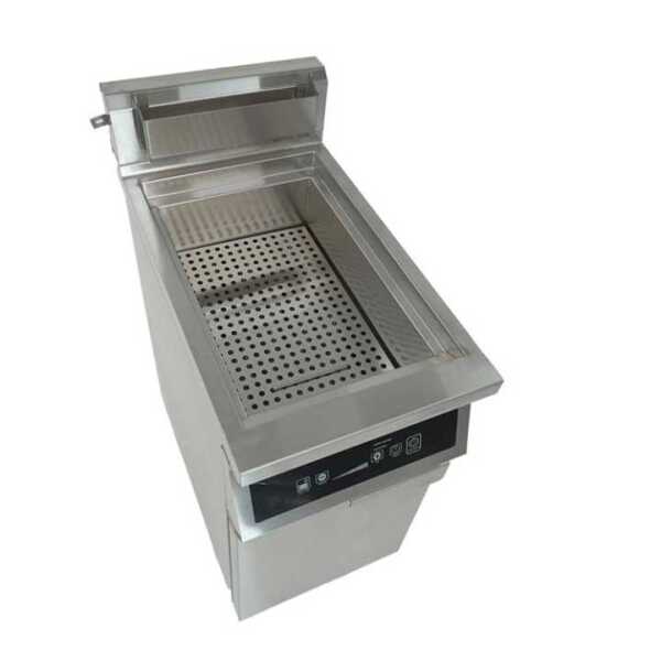 Sistema de indução: O sistema de indução, ao contrário do sistema elétrico, separa os elementos elétricos do óleo, o que garante a máxima proteção elétrica. Além de ser um sistema seguro, é fácil de limpar, pois a cuba está embutida e integrada na bancada, sem qualquer pliegue no interior, e não possui elementos de aquecimento no interior.