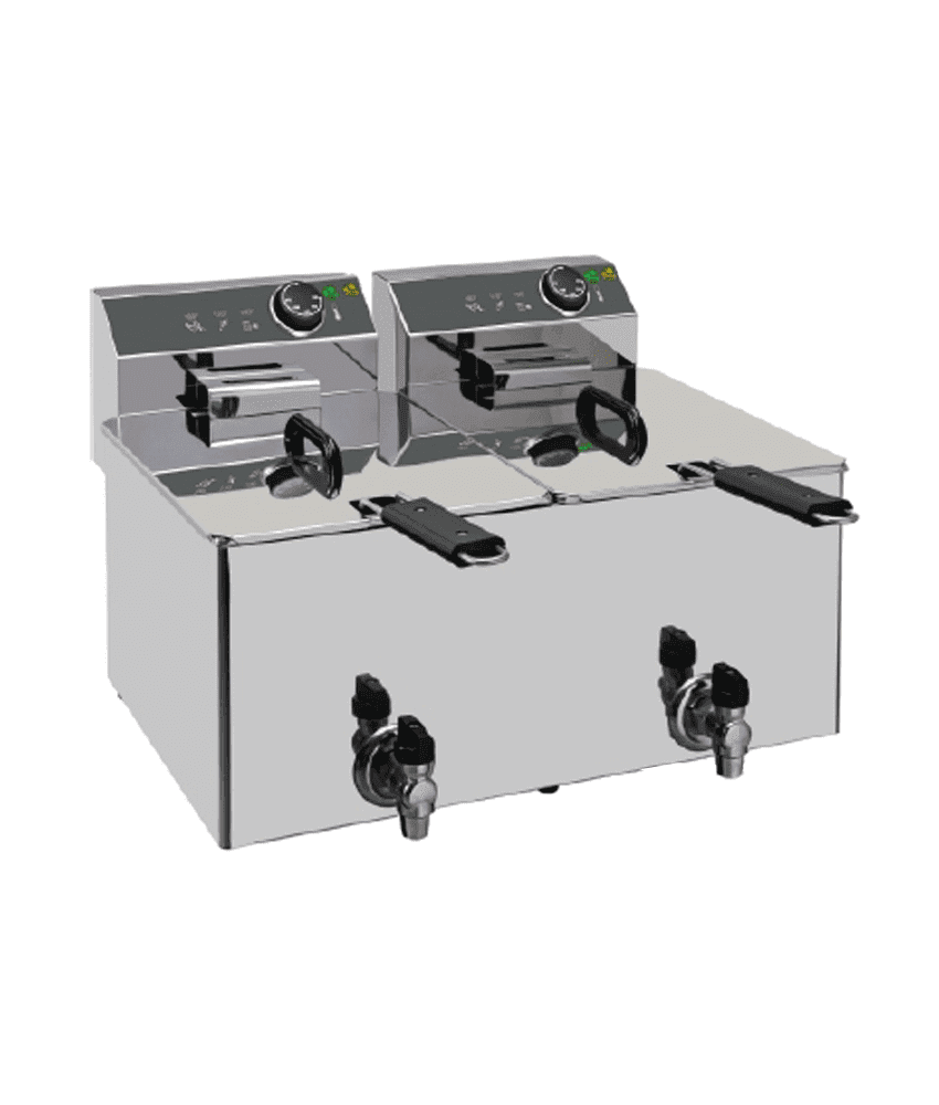 Fritadeira elétrica de bancada com 2 torneiras e 2 cubas 7+7Lts.