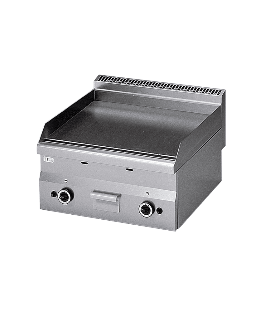 Fry Top de bancada a gás com placa lisa.