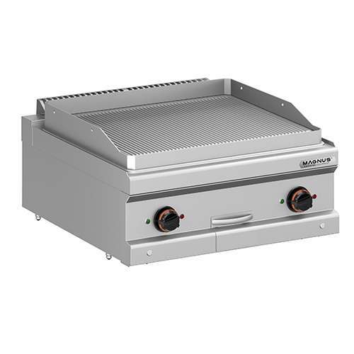 Estrutura totalmente em aço inoxidável; placa de grelhar com cantos arredondados, permitem uma fácil limpeza; molheira removível de gaveta.