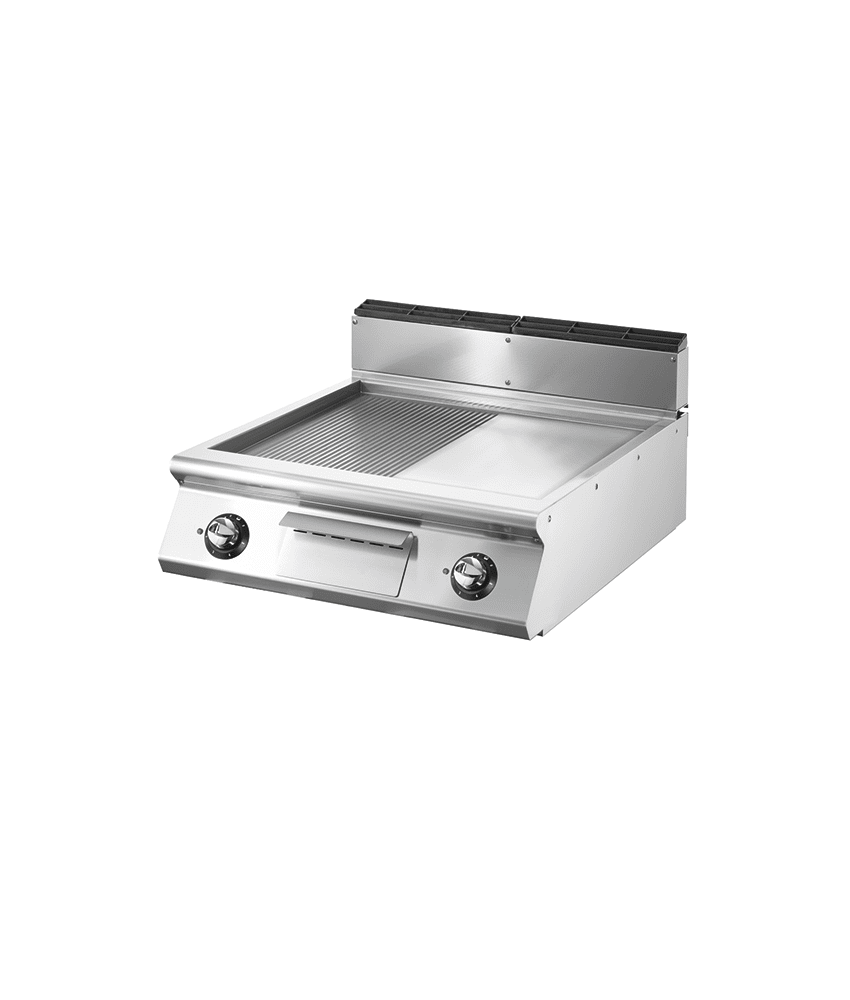 Fry Top elétrico com 1/2 placa lisa e 1/2 placa nervurada em cromoduro (800).
