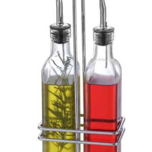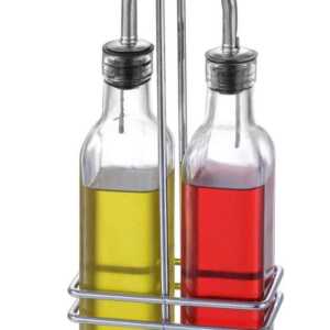 Duas garrafas de azeite/vinagre com doseador em aço inoxidável.