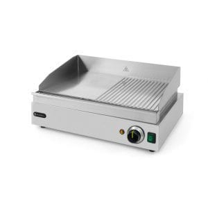 Área de grelhar 518 x 328 mm, lado esquerdo de 259 mm liso e lado direito de 259 mm canelado.