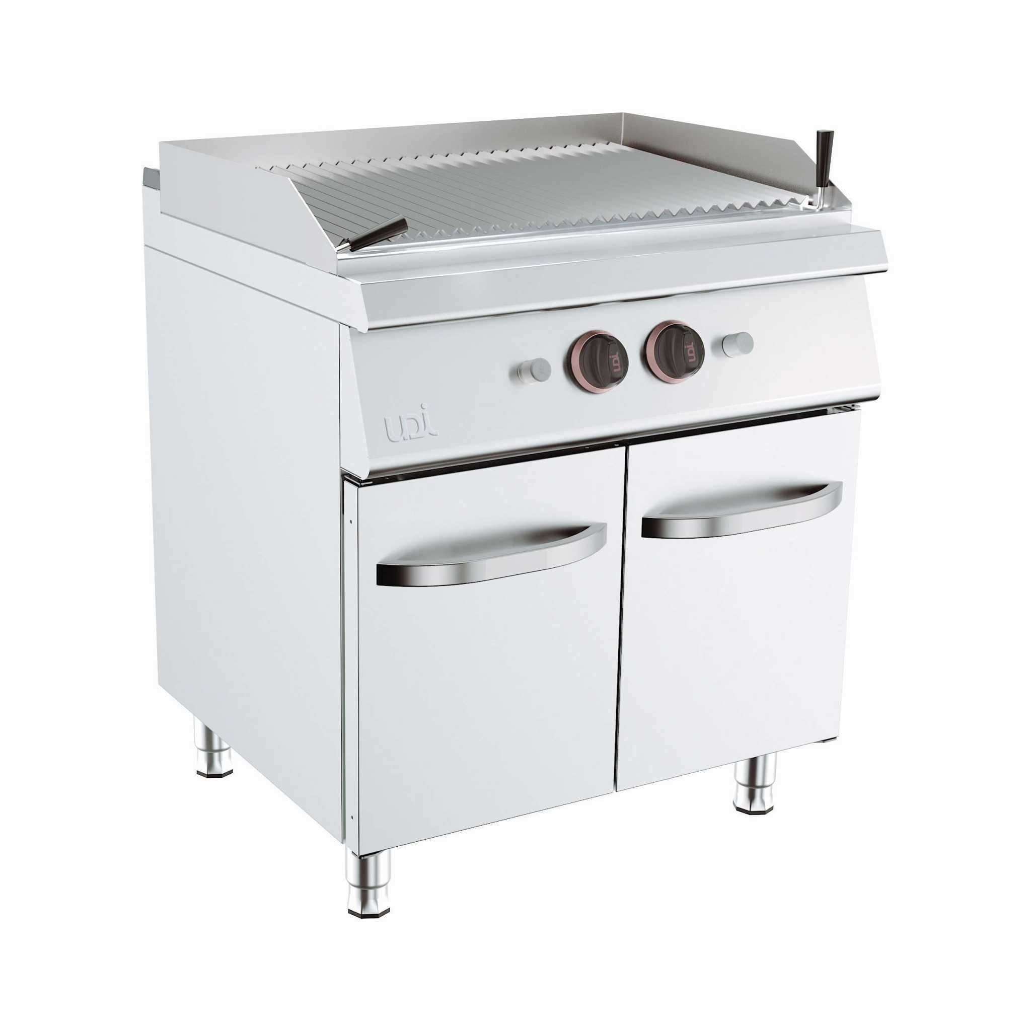Grelha inferior de ferro fundido durável Superfície de cozimento homogênea Gaveta coletora de gordura em aço inoxidável Grelha de aço em formato de “V” Compartimento de óleo residual com acendimento piezoelétrico Dois compartimentos de cozimento independentes Isolamento reduz perda de calor nas chapas de metal Superfície de cozimento inclinada com orifício para escoamento de líquidos, facilitando a limpeza