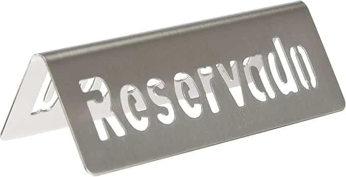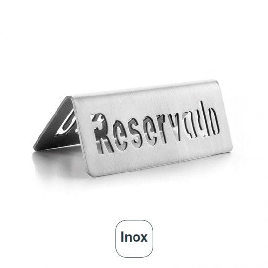 Placa de Reservado de 5×12 cm fabricada em aço inoxidável de grande qualidade, ideal para identificar mesas ocupadas em salões, bares e restaurantes.