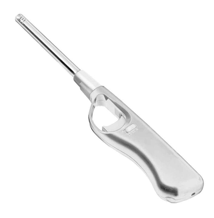 Isqueiro a gás recarregável de 27 cm de comprimento e de cana-fixa ideal para acender fogueiras em fogões a gás.