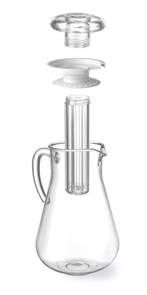 Modelo com formato de pera em plástico SAN transparente resistente a riscos e com tampa.
