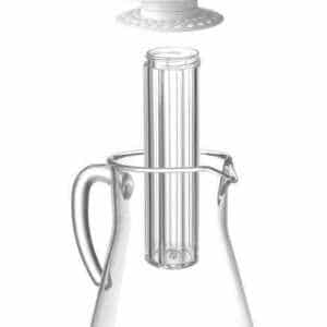 Modelo com formato de pera em plástico SAN transparente resistente a riscos e com tampa.