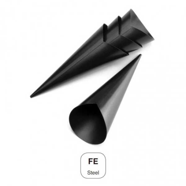 Jogo de 4 cornetos para bolos de 12 cm é fabricado em chapa de aço anti-aderente.