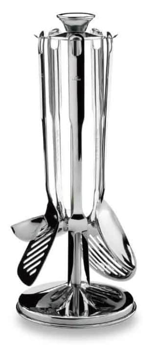 Jogo de cozinha com 5 peças da Série Super Monobloco e suporte com base giratória em aço inoxidável 18/10 de grande qualidade e resistência à corrosão.