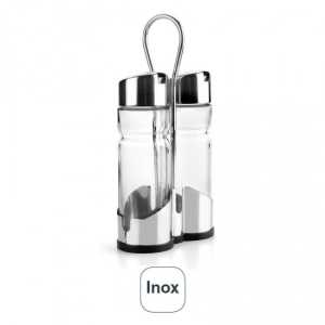 Jogo de óleos e galheteiro de 175 ml de capacidade por cada embarcação, fabricado em aço inoxidável e vidro.