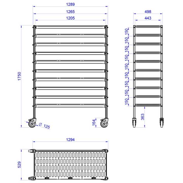 Os lados e a traseira do carrinho estão equipados com travessas para evitar que os artigos caiam para fora.