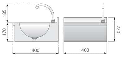 - Misturador e chaves para regular o fluxo de água quente e fria