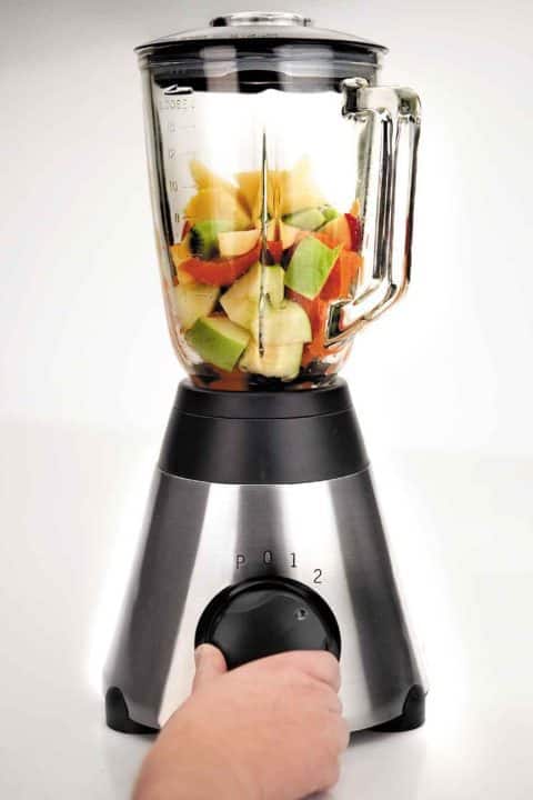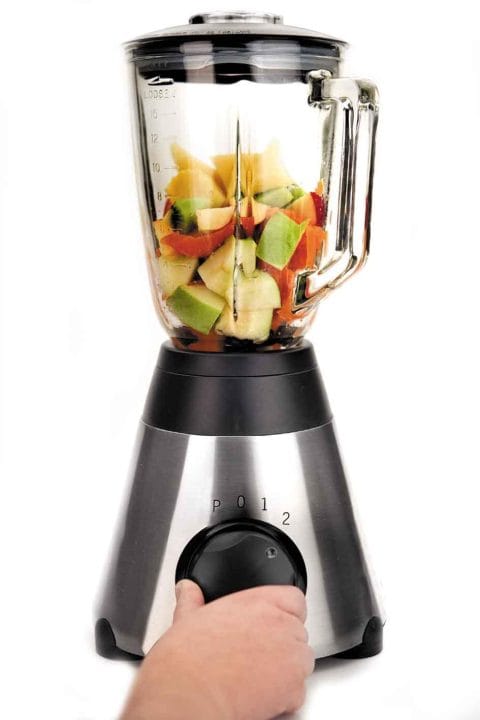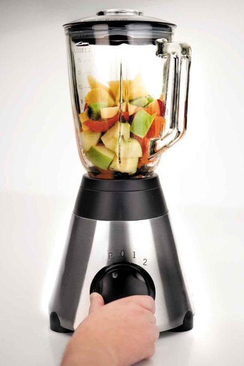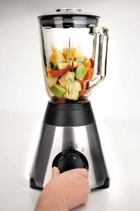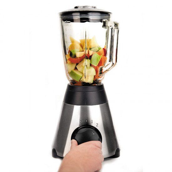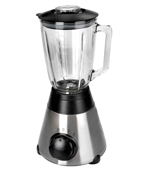 Liquidificador de cozinha de 500 W de potência, 2 velocidades mais função para picar gelo, jarro de vidro de 1,5 l de capacidade e corpo de aço inoxidável.