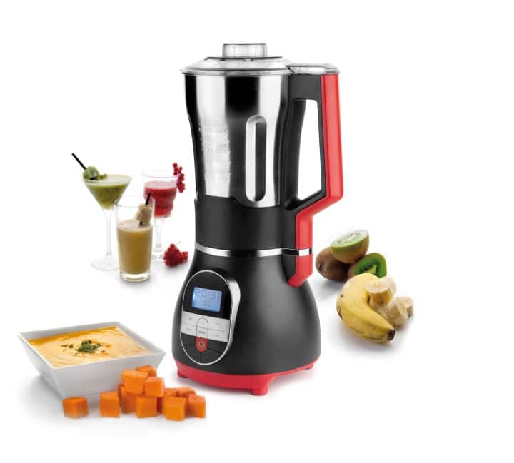 Liquidificador para sopas, purés, molhos, cremes, sucos, shakes, etc., com placa antiaderente para refogar, cozinhar em fogo lento, ou a ferver.