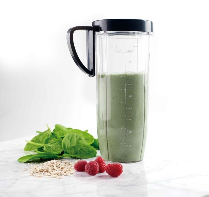 Batedeira modelo PRO de grande qualidade para preparar sem esforço batidos, cremes e sumos de fruta e verduras em poucos segundos.