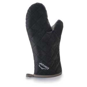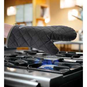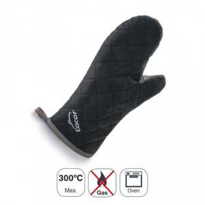 Luva de cozinha fabricado em algodão chama com propriedades auto-extinguivel para proteger as mãos de possíveis queimaduras. Proteção por até 300 ° C. Medida: 36 cm