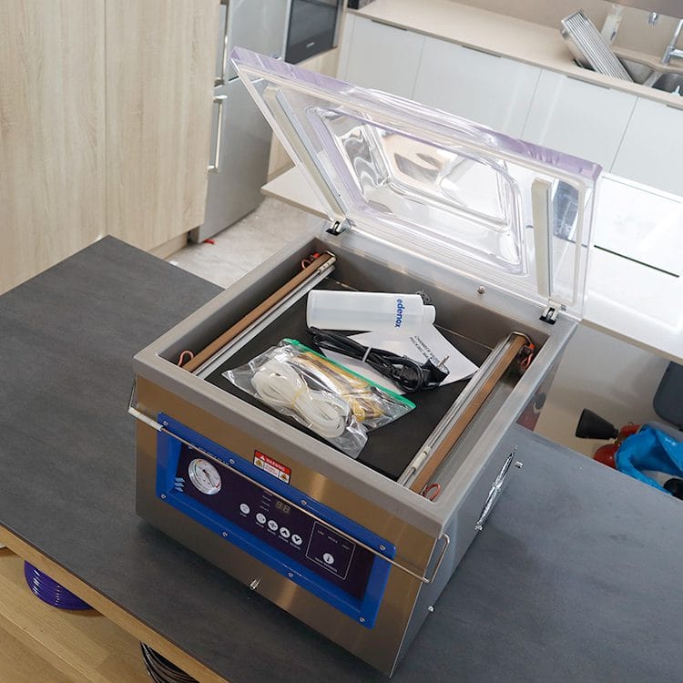 Máquinas de embalagem a vácuo com tempo controlado, com dupla barra de selagem de 500 mm.