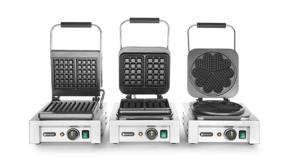 Os ferros Waffle feitos de ferro fundido esmaltado podem ser limpos com uma escova.