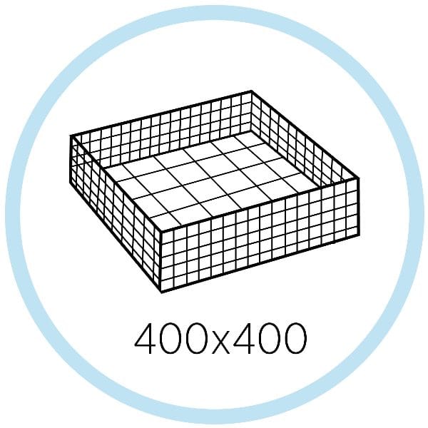 Dotação: 2 cestas de 400 x 400 mm, 1 suporte para pratos e 1 cubilete para talheres.