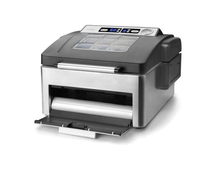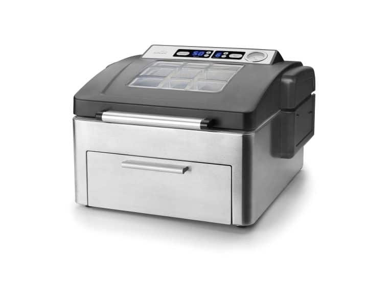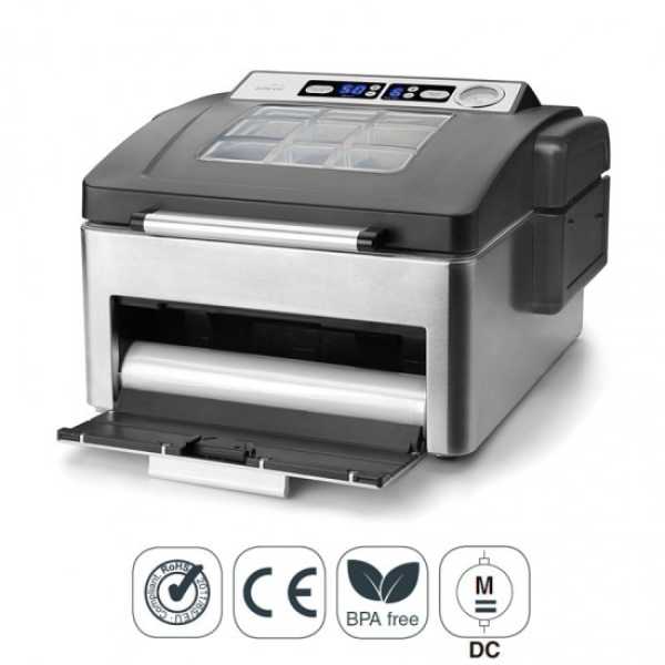 Máquina de embalagem a vácuo por meio de compressor de ar de 350 W . Ideal para uso em cozinhas profissionais de hotelaria e restauração.