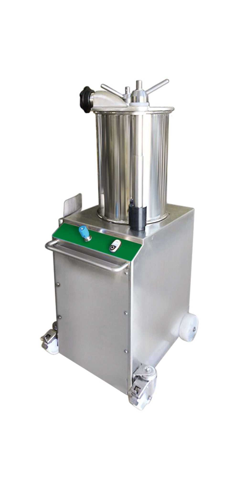 Máquina de enchidos vertical em aço inox, equipada com mecanismo mecânico de segurança, cilindro removivel para facilitar a limpeza