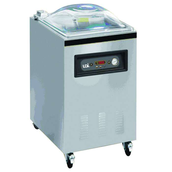 A reentrada de ar por etapas evita danificar alimentos moles ou com texturas mais sensíveis. Possibilidade de selagem com atmosfera modificada através da adição de gás, permitindo o embalamento de produtos que possam ser danificados por compressão no processo normal. Bomba de vácuo com sistema de autolimpeza. Contador de ciclos. Painel de comandos digital. Programa especial para marinar carne e peixe.