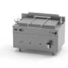 – Marmita com forma retangular com cuba cilíndrica. Pode ser montada individualmente ou em bateria. Graças à sua solidez e funcionalidade, é adequada para uso prolongado e continuado. – Cuba de cocção com fundo de aço inoxidável AISI 316 com espessura de 20/10 a 40/10 e paredes de aço inoxidável AISI 304 com espessuras de 20/10 a 25/10. – Orifício de descarga da cuba com filtro extraível. – Torneira de descarga frontal com corpo único dotado de pega atérmica isoladora. – Tampa de aço inox AISI 304 com espessura 15/10, equipada com cremalheira de aço cromado com pré-carga das molas e pega atérmica. – Manómetro para o controlo da pressão no interior da parede dupla. – Válvula manual para escape de ar para a despressurização da parede dupla que se produz na fase de aquecimento. – Estrutura forte em aço inoxidável com espessura de 30/10 montada sobre pés de aço reguláveis para nivelação. – Paredes externas de aço inoxidável AISI 304 acetinado com espessura 10/10. – Estante acetinada em aço inoxidável AISI 304 com espessura 15/10. – Queimadores tubulares de alto rendimento em aço inoxidável. – Ligação piezoelétrica manual e chama piloto. – Grade de evacuação de fumo.