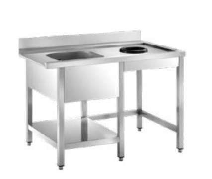 Mesa lava pratos inox, entrada, 1500x735x850, com cuba