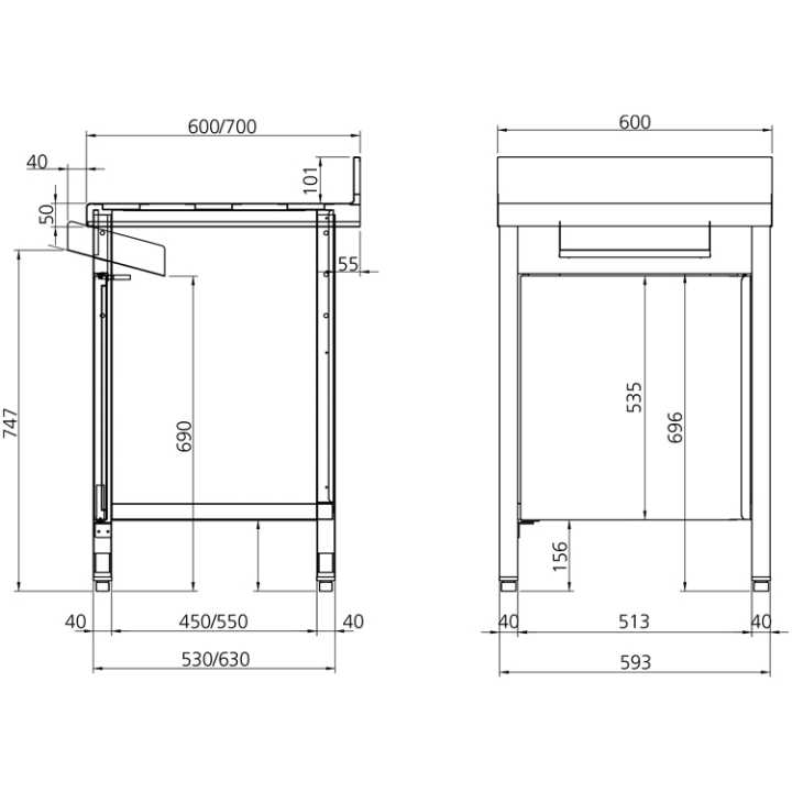 Fabricada em aço inoxidável. Mesa Mural com Porta e sem Bas...