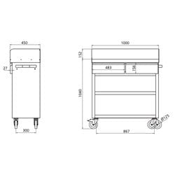 Como acessório, existe o porta-bandejas, ideal para armazenar as bandejas do garçom enquanto não são utilizadas.