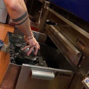 O suporte do forno é robusto e feito inteiramente de aço inoxidável.